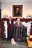 Our Holiday “Peace on Earth” card features a photograph taken at the White House in the Caftan Dress Amy created (all her creations are unique pieces), we did Photoshop our dog Lola into the picture and are awaiting a “Goddess Pet Couture” line one day from Amy’s magic kingdom…