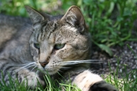 And, like every good outdoors-person, Zane Gray goes green, every day. He is ecological in the extreme. He starts each day with a breakfast of grass to aid his digestion of the immense quantities of food he is going to weasel out of us later. He buries his poop so we don't have to buy kitty litter, fertilizing our property as he goes. He keeps the rodent population down without the use of poisons. Actually, come to think about it, he keeps us aware of not putting anything out on our lawn or elsewhere that might harm him and, consequently, other animals and, ultimately, Amy and me.