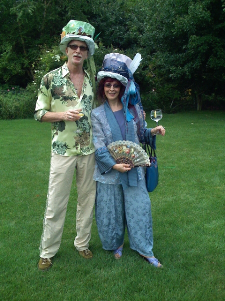 Dan and I are best friends since we met in art school in 1969! He is a wonderful artist. Here we are at a summer party where everyone wore madhatter hats. Fun!