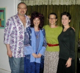 Three of our favorite people: Dr. Gerry Epstein, author of "Healing Visualizations" and his wife Rachel, next to Monte. She is a lawyer and an acupuncturist. We always have great conversations together.In the middle is our dear friend, Torie Gibralter. Torie has a wonderful gift- she tunes into people who are dying, and offers help and guidance to their higher selves. She has a huge collection of my jackets and robes, and I have made some of my best creations for her.